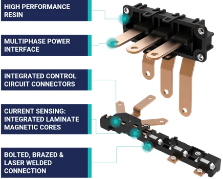 关键总成与互连解决方案:应用于新能源汽车领域的高附加值产品,如电机定子母排、逆变器母排、电池连接系统等。
